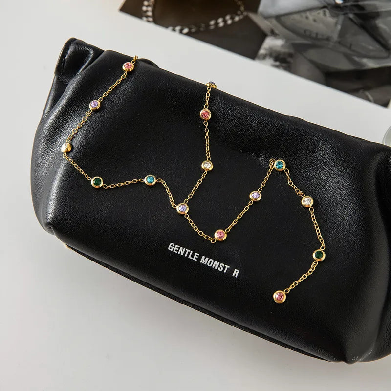 Dainty Gold Plated Chain with White Stone Charms